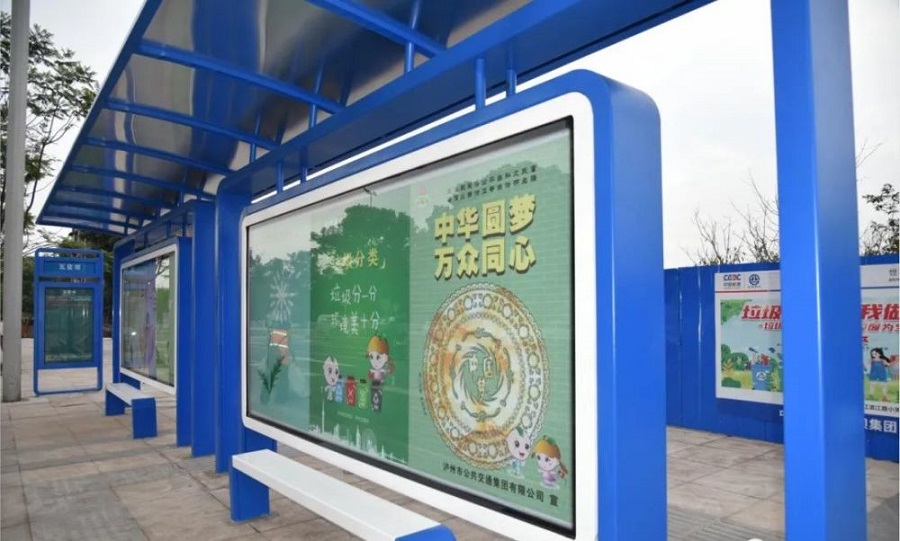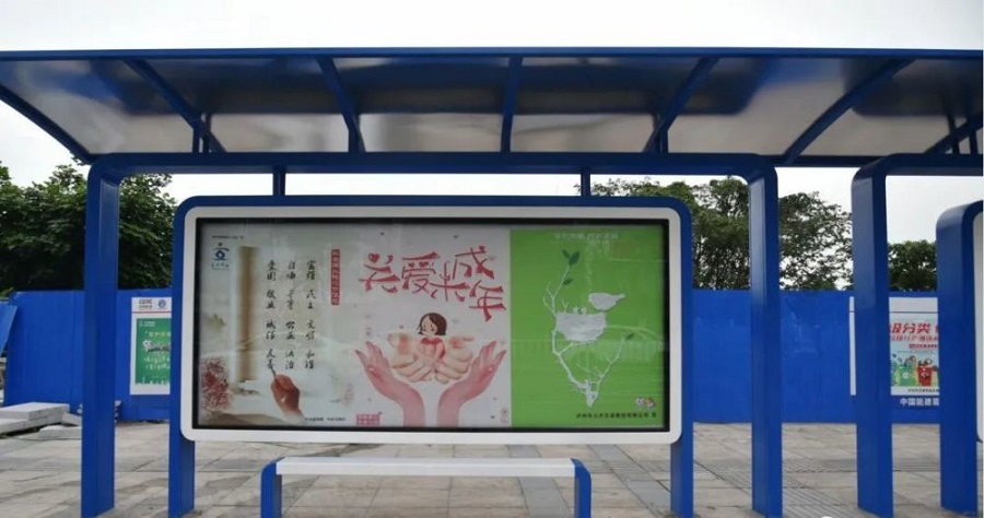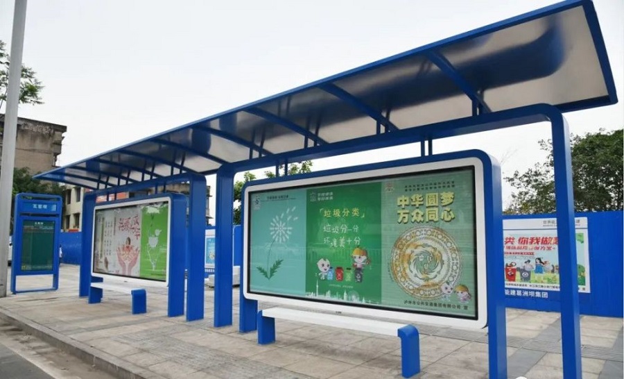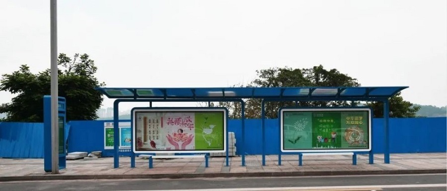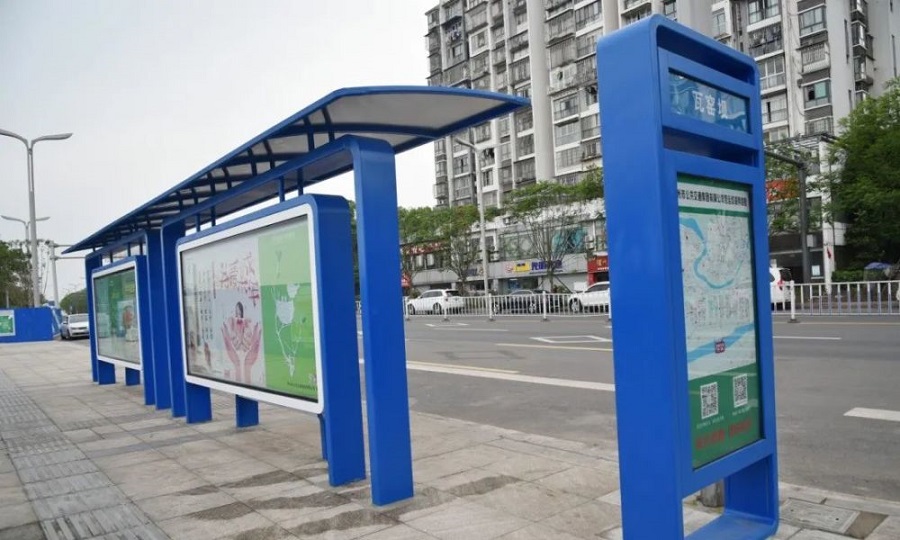 新款的公交站臺(tái),不再是單一的路線牌,跳躍的藍(lán)白配色,在視覺上更簡(jiǎn)潔大氣,讓室外候車更有趣